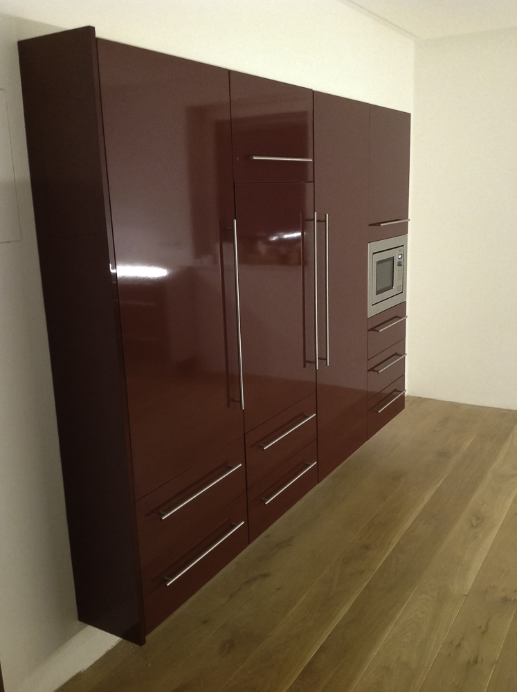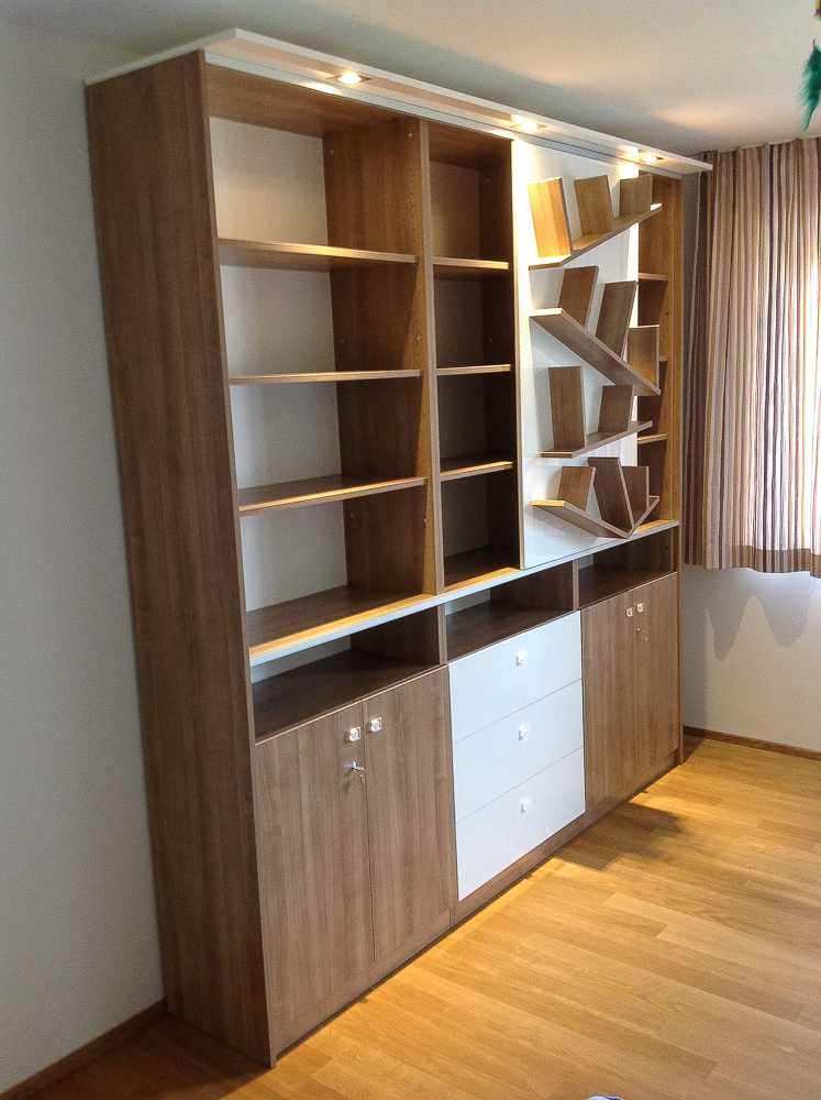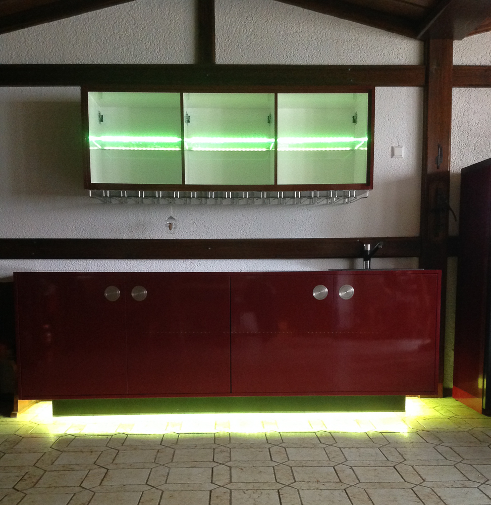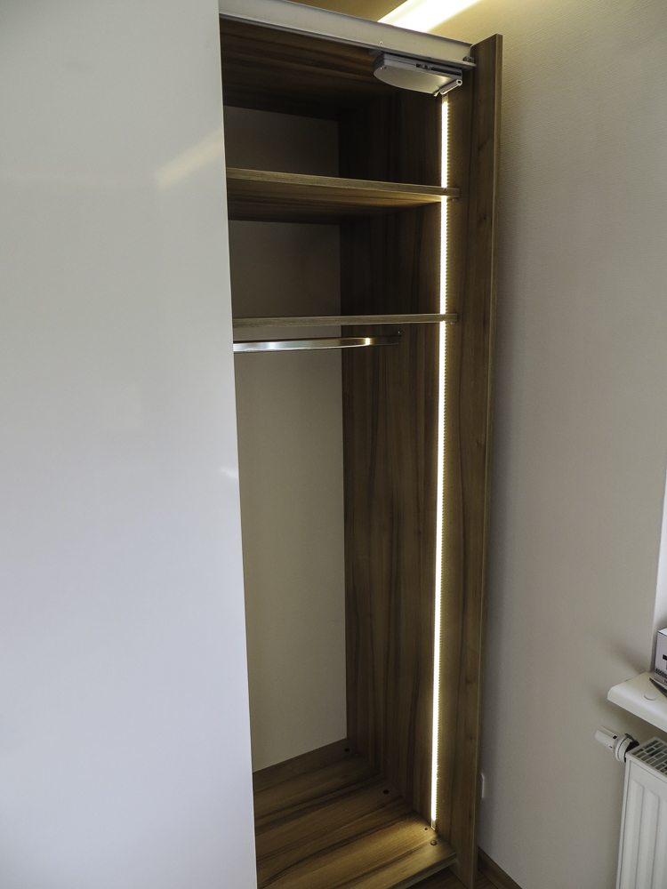 Schrankmodul weiß hochglanz mit Echtholzfurnier Makassar, LED-Beleuchtung
