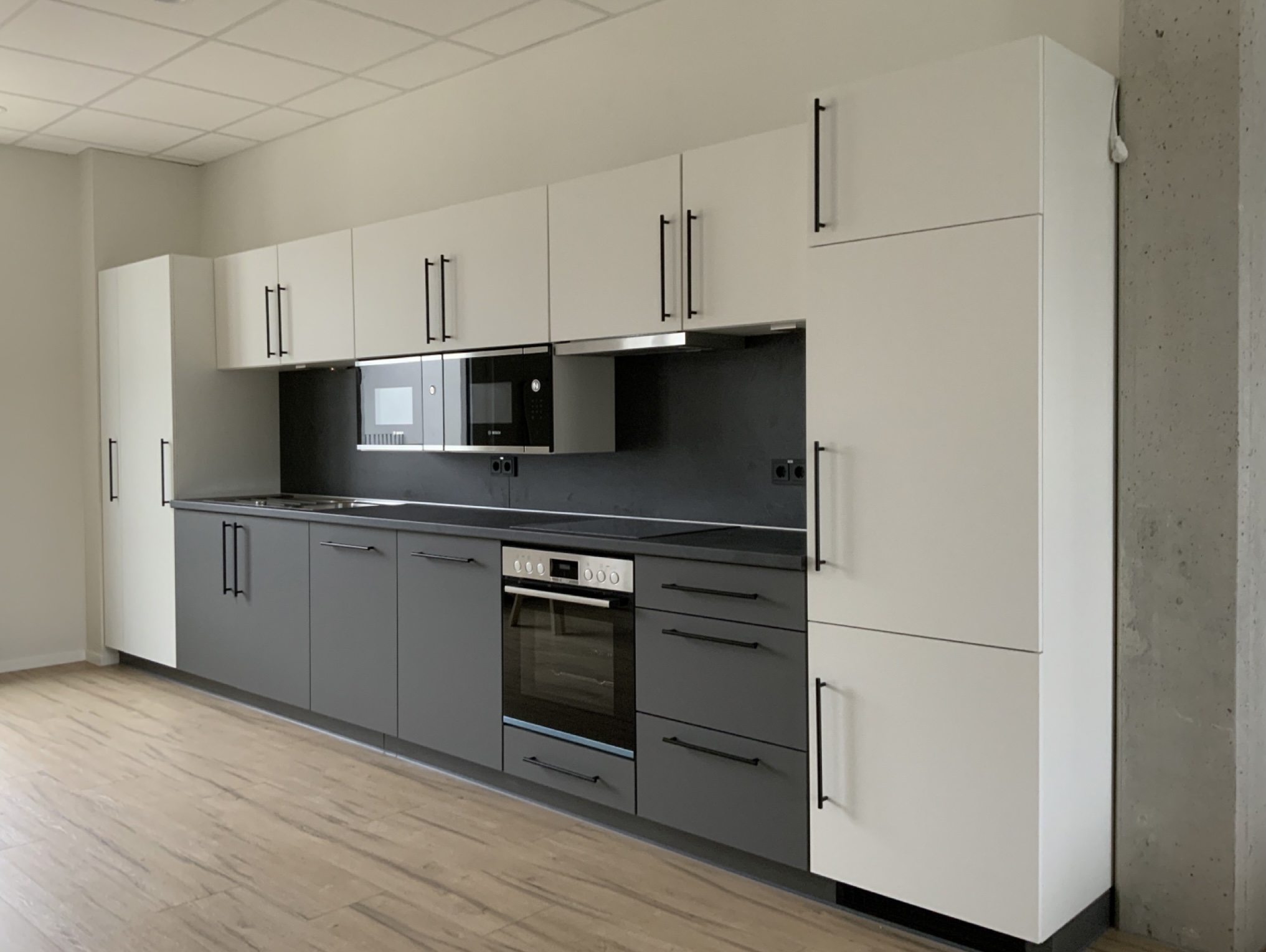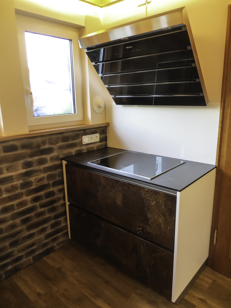 Küche, anthrazit/weiß matt in Kombination mit Jura Schiefer