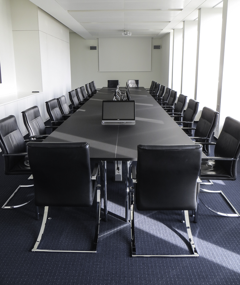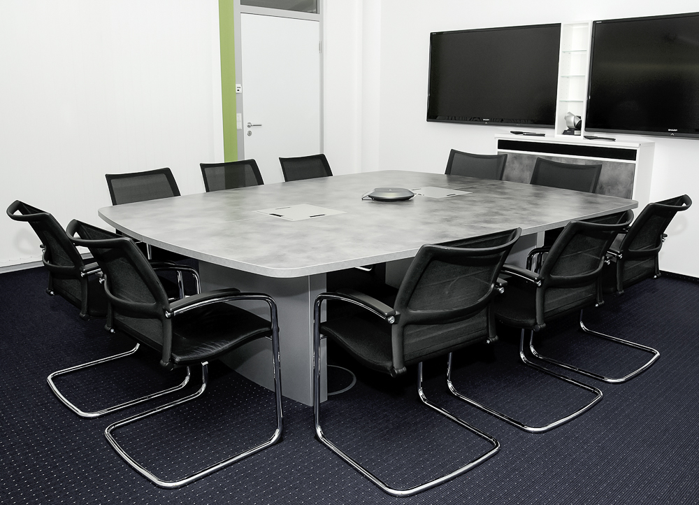 Konferenztisch, Material: Arpa fenix schwarz matt mit Einbauconnectoren