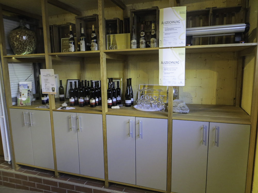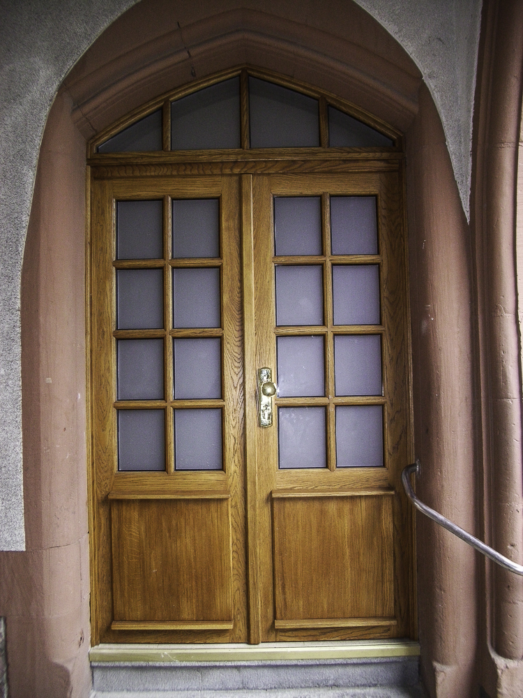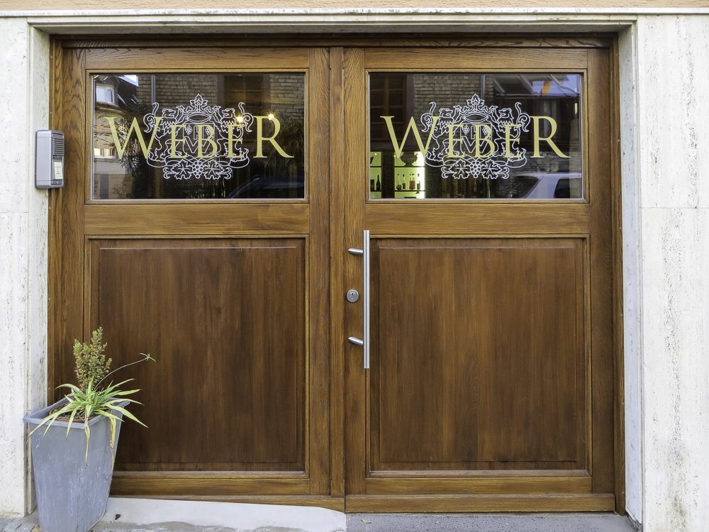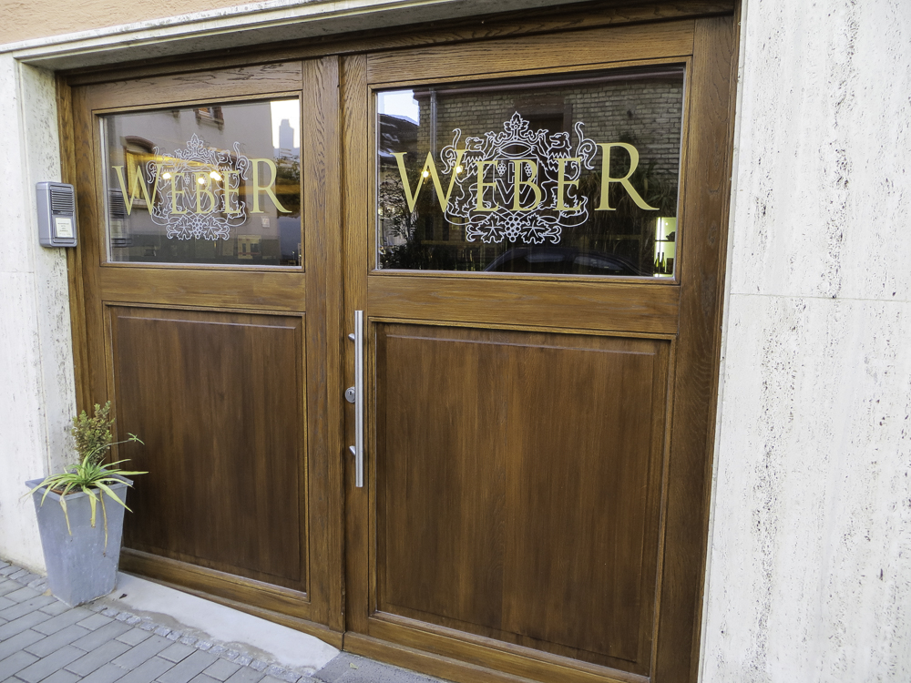 Eingangstür für Vinothek, Eiche massiv, Glas mit Logo, Sonderanfertigung