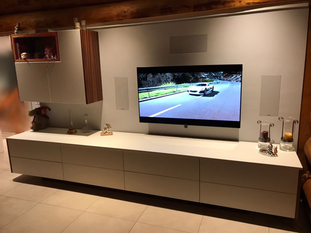 Media TV-Wand, weiß hochglanz in Kombination mit Echtholzfurnier Makassar